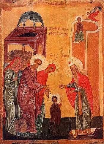 In the Minea of St. Dimitry of Rostov we read, Thus with the honor and glory not only of men, but also of angels, the most Immaculate Maiden was led into the temple of the Lord. And it was meet: for if the ark of the Old Testament, bearing manna in itself, which served only as a prototype of the Most Holy Virgin, was carried into the temple with great honor, with the assembling of all Israel, then with how much greater honor, with the assembling of angels and men, had to take place the entry into the temple of that same living ark, which had manna — Christ — in it, the Most Blessed Virgin, fore-ordained to be the Mother of God.